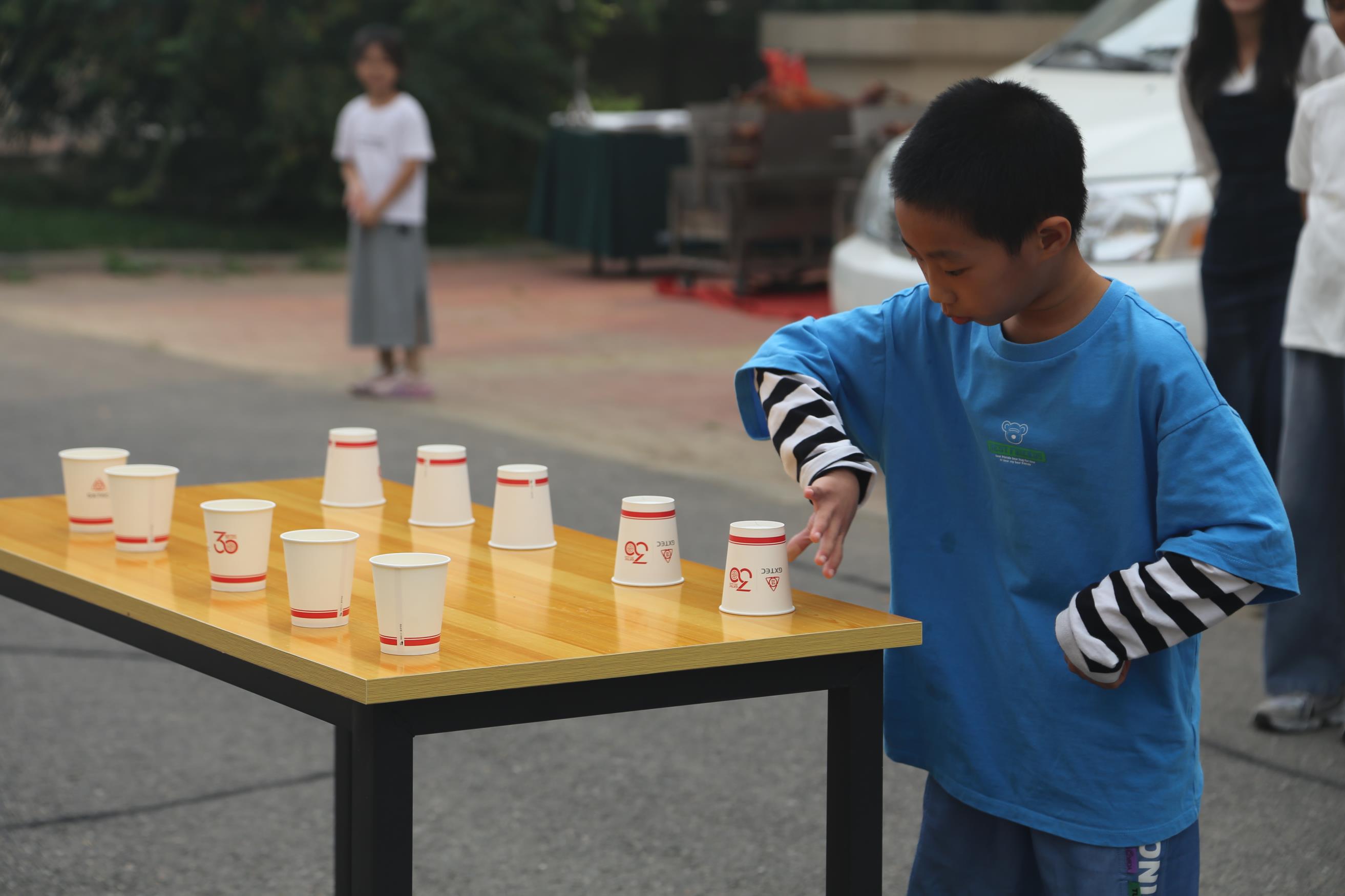 “單手翻紙杯”環(huán)節(jié),大家你追我趕,為了團(tuán)隊的榮譽(yù)奮力奔跑。汗水在臉頰上流淌,卻無法阻擋他們前進(jìn)的步伐。