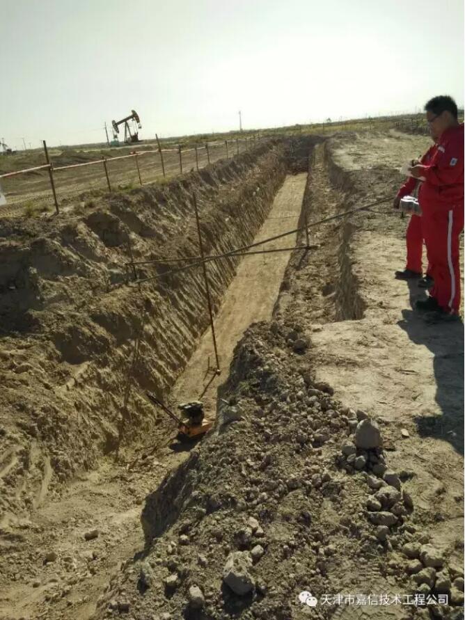 2017年8月天津嘉信一線的技術(shù)人員不懼驕陽的炙烤,不顧汗水一次又一次的浸透工服,在中石化西北油田分公司、新疆油田采油一廠、大港油田、華北油田同時展開了160公里、32公里、22公里、20公里四個金屬磁記憶檢測項目。根據(jù)嘉信技術(shù)近年來的經(jīng)驗積累,本次檢測在技術(shù)選擇上采用更具有針對性的瞬變電磁檢測(TEM)方法進行平均管壁減薄率檢測,利用金屬磁記憶(MTM)方法進行管體不均勻減薄的定量檢測,對于腐蝕較嚴重的管段和檢測數(shù)據(jù)異常處進行加密檢測,對存在強電磁干擾、同溝敷設(shè)、套管及彎頭等特殊部位應(yīng)用超聲導(dǎo)波檢測方法進行管壁橫截面積損失率檢測,采用此技術(shù)方法進行檢測可以確保檢測的可靠性及可行性。