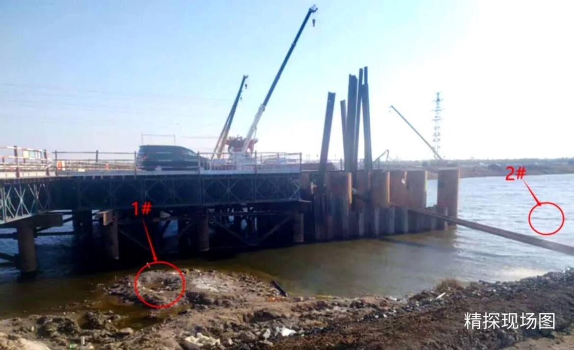 在測量2# 位置的過程中,技術(shù)人員發(fā)現(xiàn)距離水面深度約7m處有另一信號(hào)。由于資料中并未標(biāo)注目標(biāo)管道附近有其他管線,因此委托方對(duì)于此處信號(hào)是附近鋼板樁造成的干擾還是真實(shí)存在其他管線存在懷疑。
